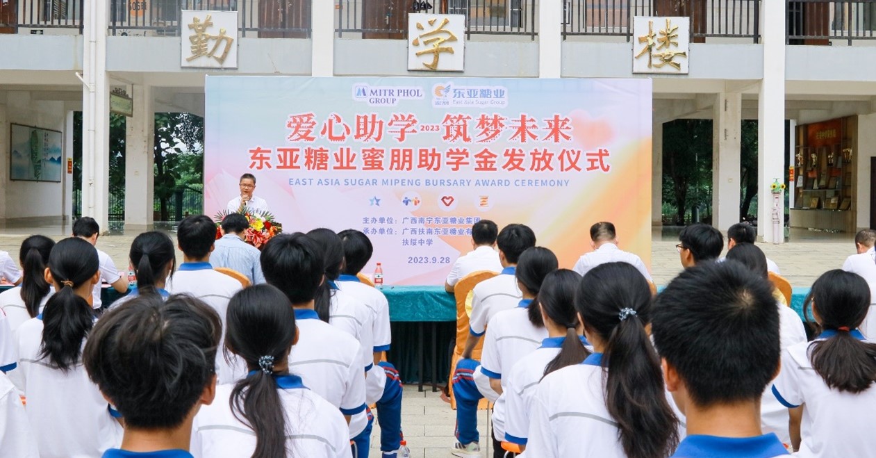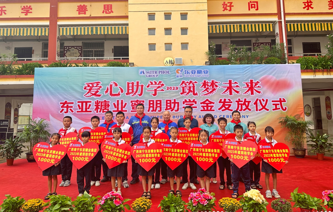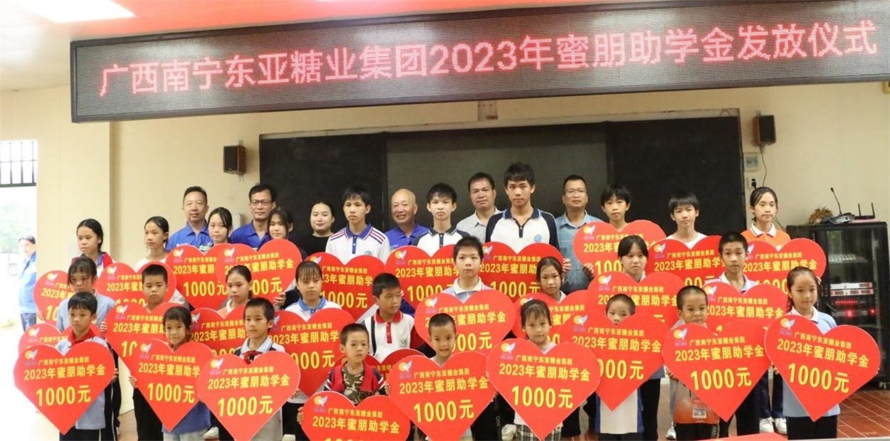 2023年9月28日,廣西扶南東亞糖業(yè)有限公司在扶綏中學(xué)舉行2023年蜜朋助學(xué)發(fā)放儀式,為蔗農子女發(fā)放助學(xué)金,用希望之光照亮莘莘學(xué)子的求學(xué)之路。