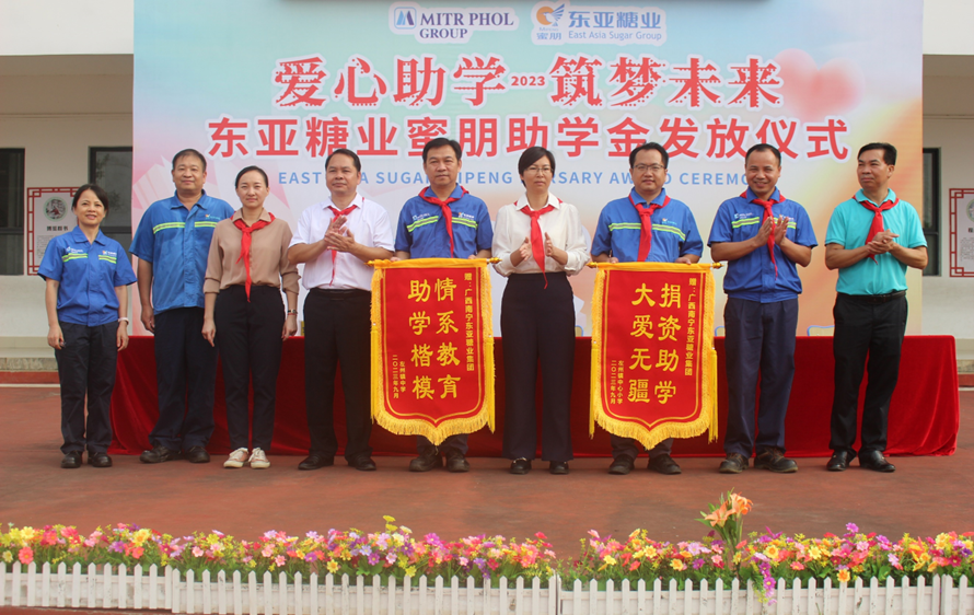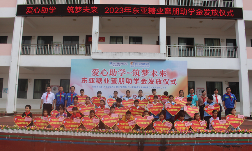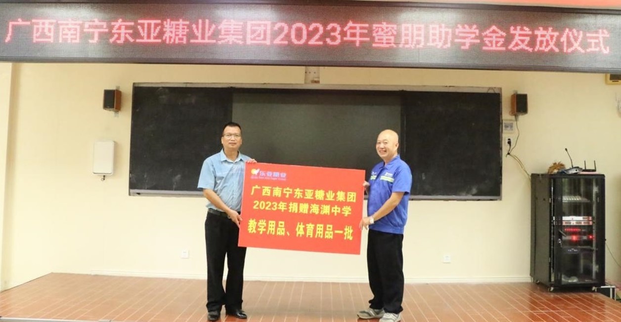 2023年9月26日,海棠公司在寧明縣海淵中學(xué)舉行“愛(ài)心助學(xué) 筑夢(mèng)未來(lái)”東亞糖業(yè)蜜朋助學(xué)金發(fā)放儀式。