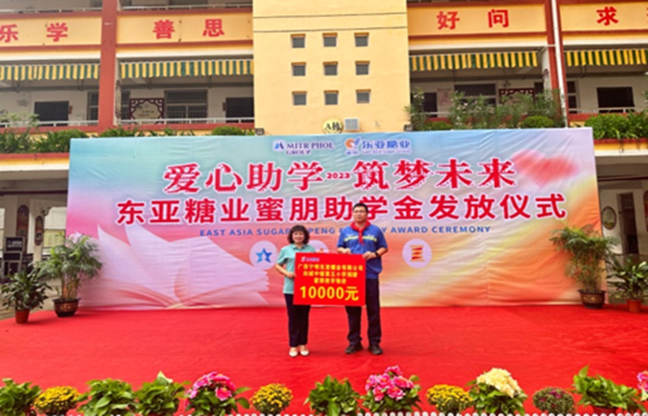 金秋助學(xué),“益”路前行。2023年9月26日和9月28日,崇左公司分別在江州區羅白鄉民族實(shí)驗學(xué)校和板利民族雙語(yǔ)學(xué)校舉行“東亞糖業(yè)蜜朋助學(xué)金發(fā)放儀式”,羅白鄉黨委書(shū)記、板利鄉黨委書(shū)記、東亞糖業(yè)李方林副總裁、辛樹(shù)廣總裁助理、唐坡農務(wù)總經(jīng)理、工會(huì )林文雄主席等領(lǐng)導分別出席助學(xué)金發(fā)放活動(dòng)。