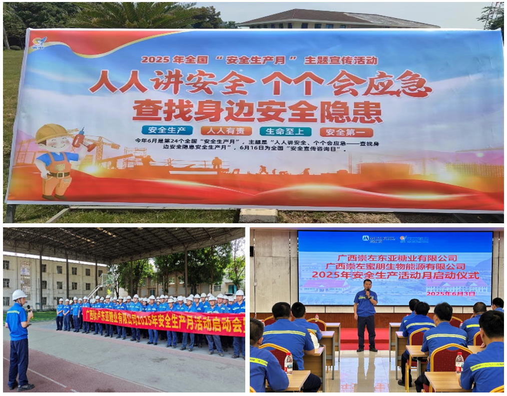 安全生產(chǎn)是企業(yè)發(fā)展的生命線(xiàn),必須常抓不懈、久久為功。在2025年6月——第24個(gè)全國“安全生產(chǎn)月”來(lái)臨之際,東亞糖業(yè)緊緊圍繞“人人講安全、個(gè)個(gè)會(huì )應急——查找身邊安全隱患”主題,以“安全生產(chǎn)月”為契機,以月促年,突出全員性、突出企業(yè)安全文化培育,推動(dòng)樹(shù)牢安全發(fā)展理念,強化安全生產(chǎn)主體責任落實(shí),深化重大事故隱患專(zhuān)項排查整治,筑牢公司高質(zhì)量發(fā)展安全屏障。